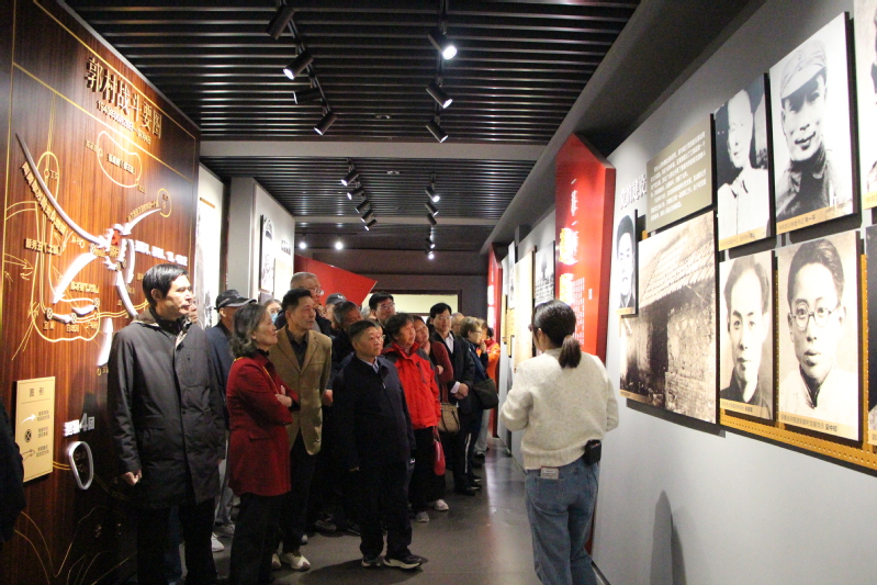 江都区郭村保卫战纪念馆内陈列的革命文物、历史图片及影像资料,将众人思绪带回烽火岁月。通过观看展陈,老同志们深入了解了1940年新四军以少胜多的英勇事迹,深刻感受到革命先辈的理想信念与奋斗精神。